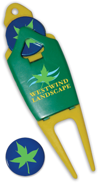 The colors of the top and bottom of the divot tool and the color of the ball markers can be easily and quickly interchanged to fit your specifications. Personalize your product further by printing a name, logo or symbol on the ball marker and/or divot tool top.